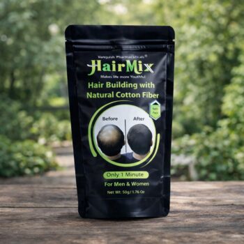 HairMix Fibers makes thinning hair look thicker and fuller in 1 minute. Simply shake HairMix Fiber into any area of thinning hair. The cotton fibers instantly cling to and fill out existing hair. In a matter of seconds, hair looks significantly thicker, fuller, and scalp show -through disappears. Lasts all day, through perspiration, wind and rain. Yet it easily removes with any shampoo. HairMix Fibers are designed to enhance the appearance and health of your hair.